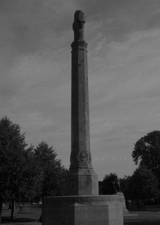 Auf einem Platz steht ein Kriegsdenkmal der Muggel in Form eines Obelisken, in dem die Namen der Gefallenen eingetragen sind. Wenn magisch Begabte daran vorbeigehen, verwandelt es sich jedoch in eine Statue. Zauberer sehen einen Mann mit wirrem Haar und einer Brille sowie eine Frau mit langem Haar und einem lieblichen Gesicht, die ein Baby auf den Armen hält. Es stellt die Potters mitsamt Harry dar, er hat auf diesem Bildnis keine gezeichnete Narbe auf der Stirn.