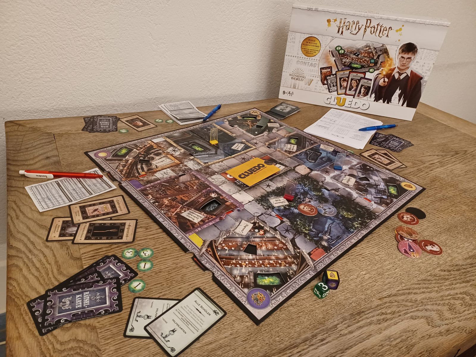 Text: Hedwig007 (Gryffindor), Bild des Kartons und Bild des Spielmaterials von Hedwig007