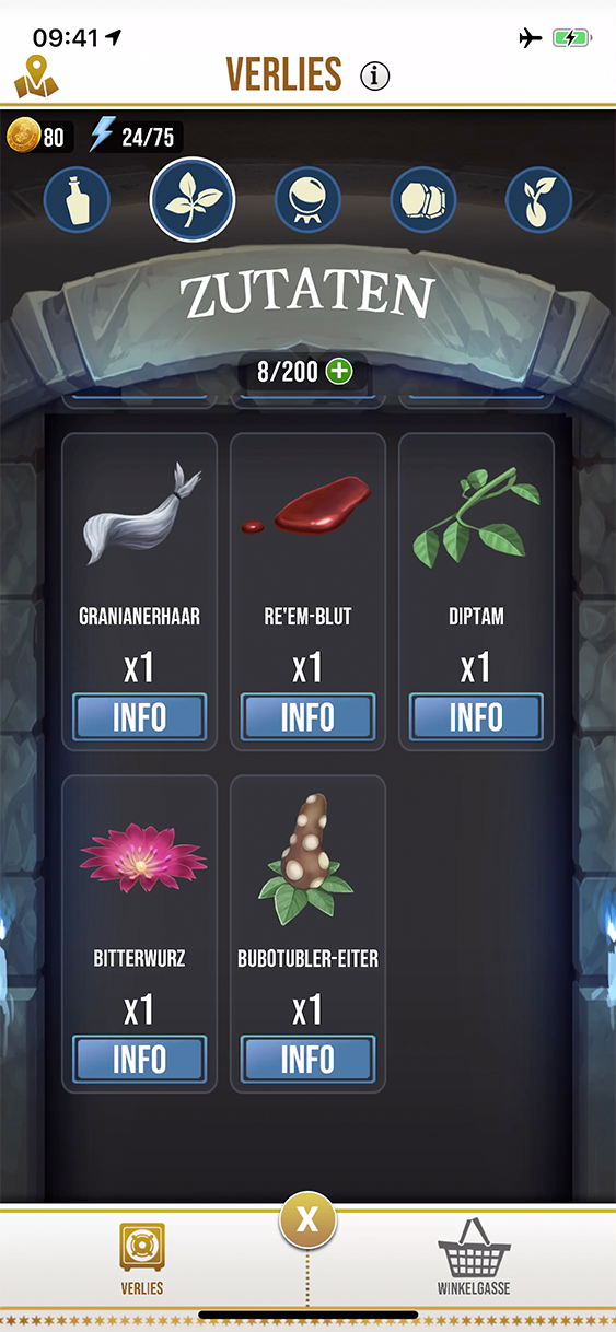 - Pass gelegentlich auf die Kapazität deines Verlieses auf: Es wäre ärgerlich, wenn du eine seltene Belohnung nicht bekommst, weil es voll ist. Bei jedem Gegenstand im Verlies kannst du auf „Info“ tippen und damit eine gewisse Anzahl davon wegwerfen. Hast du nämlich von einem bestimmten Gegenstand besonders viele, ist die Chance hoch, dass du gar nicht so viele benötigst oder sie ohnehin schnell auch wiederfinden würdest. Achte aber darauf, dass du in der richtigen Verlies-Kategorie bist (beispielsweise Zutaten-Verlies oder Samen-und-Wasser-Verlies), da jeder Bereich seinen eigenen Füllgrad hat.